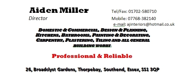 Based in Thorpe Bay, AJ Interiors is a small family-run business specialising in kitchens and bathrooms. Unlike many builders, we are reliable and turn up when we promise. References are available.